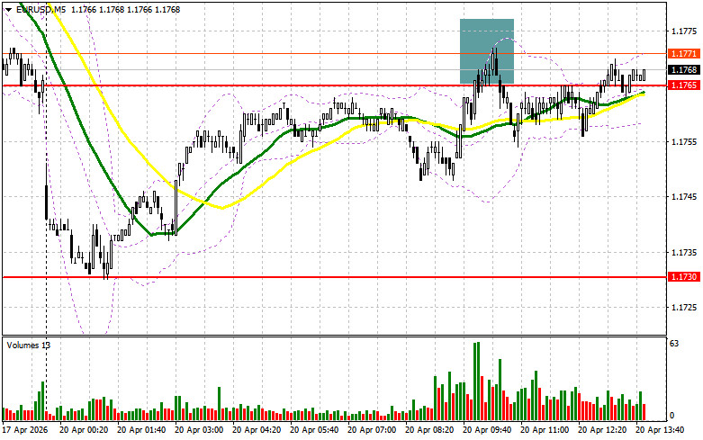 В своем утреннем прогнозе я обращал внимание на уровень 1.1765 и планировал от него принимать решения по входу в рынок. Давайте посмотрим на 5-минутный график и разберемся с тем, что там произошло. Рост и формирование ложного пробоя в районе 1.1765 привели к точке входа в короткие позиции, но после снижения пары на 10 пунктов давление с рынка ушло. На вторую половину дня техническая картина не пересматривалась.Для открытия длинных позиций по EURUSD требуется:Сегодня все больше появляется новостей о том, что Иран