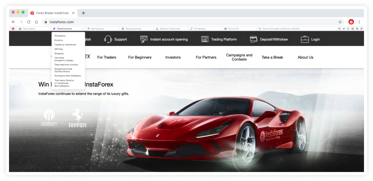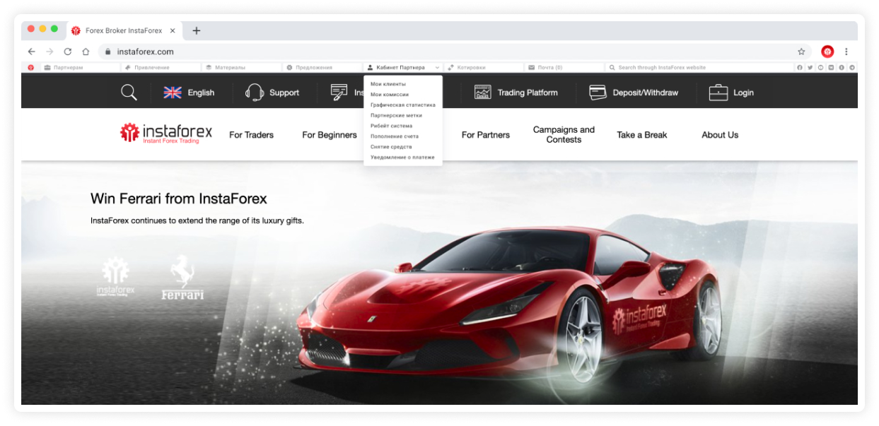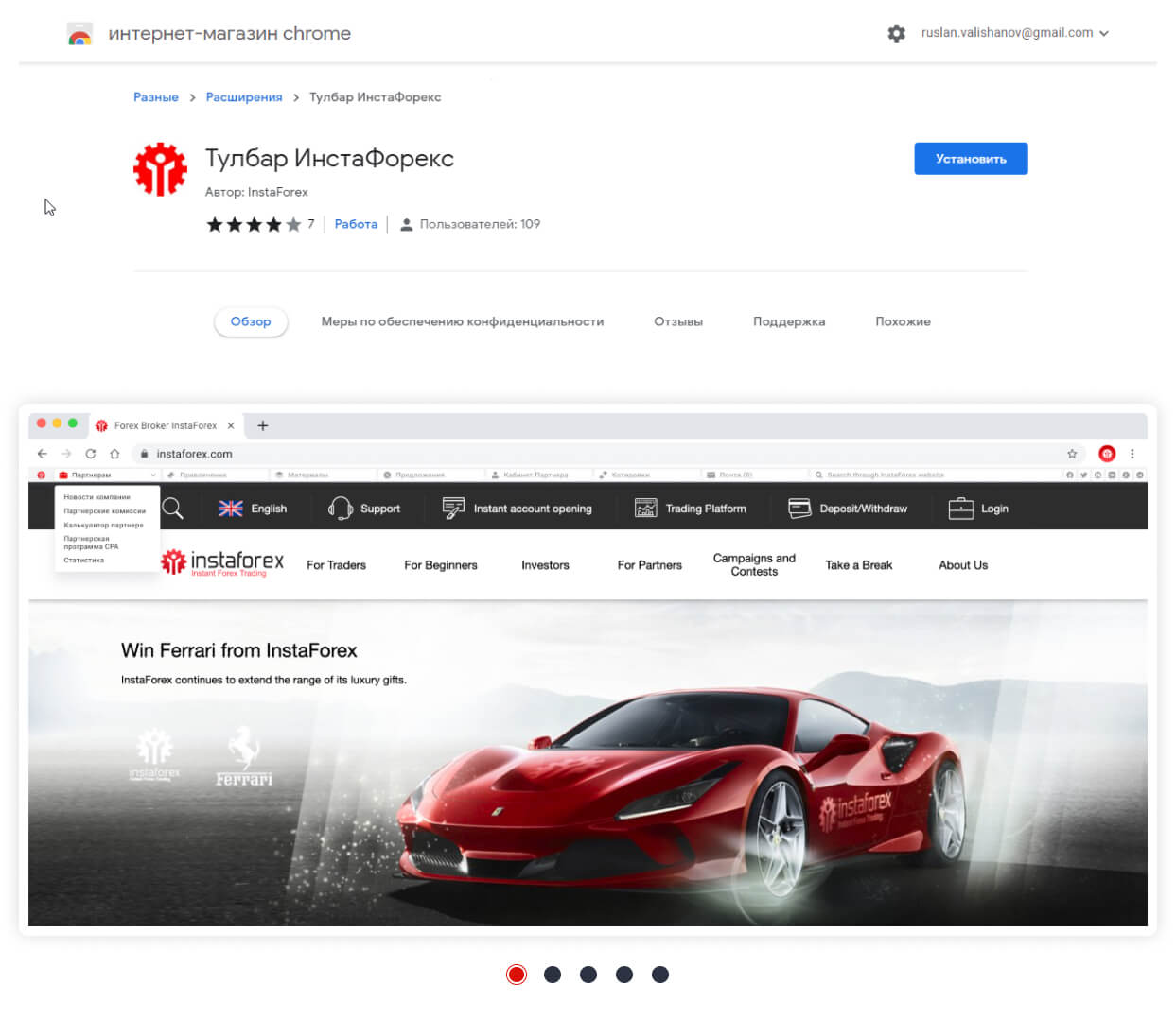 With the Toolbar for InstaForex Partners, you will quickly navigate pages you are interested in and have access to social media, live quotes, online trading, the web portal, and the latest news about our company. The extension can be integrated into Google Chrome, Opera 15+, and Yandex Browser.