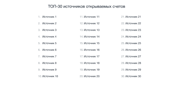 • Ушбу бўлимда очилган ҳисоблар бўйича умумий статистикани кузатиш осон — муваффақиятли ойларни ажратиб олиш, мижозларни жалб этишдаги камайишни вақтида эшитиб олиш ва агар эски тактика олдинги натижаларни бермаса, маркетинг стратегиясини ўзгартириш мумкин.