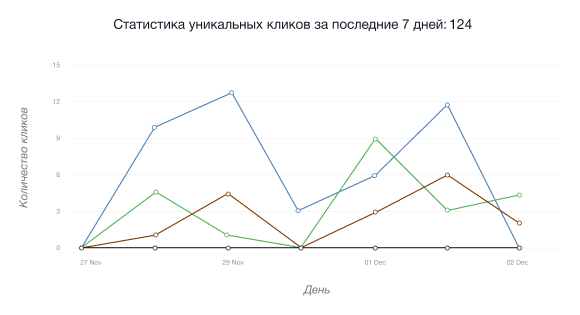 • Ҳамкорлик ссылкасига бўйича уникал кликлар графиги 24 соат ичида маълум IP-адресдан биринчи марта уни ўтган мехмонлар сонини кўрсатади.
