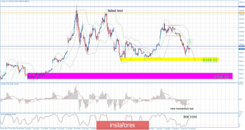 MACD is showing the new momentum down on the oscillator, which is good indication for further downside continuation move. Additionally, there is a fresh bear cross on the Stochastic, which is another indication for downside. Selling opportunities are preferable with the targets at $9,168 and $9,724.