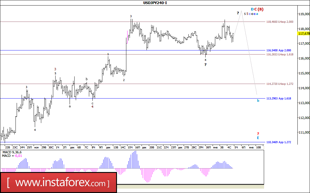 Волновой анализ валютной пары USD/JPY за 5 января 2017 года