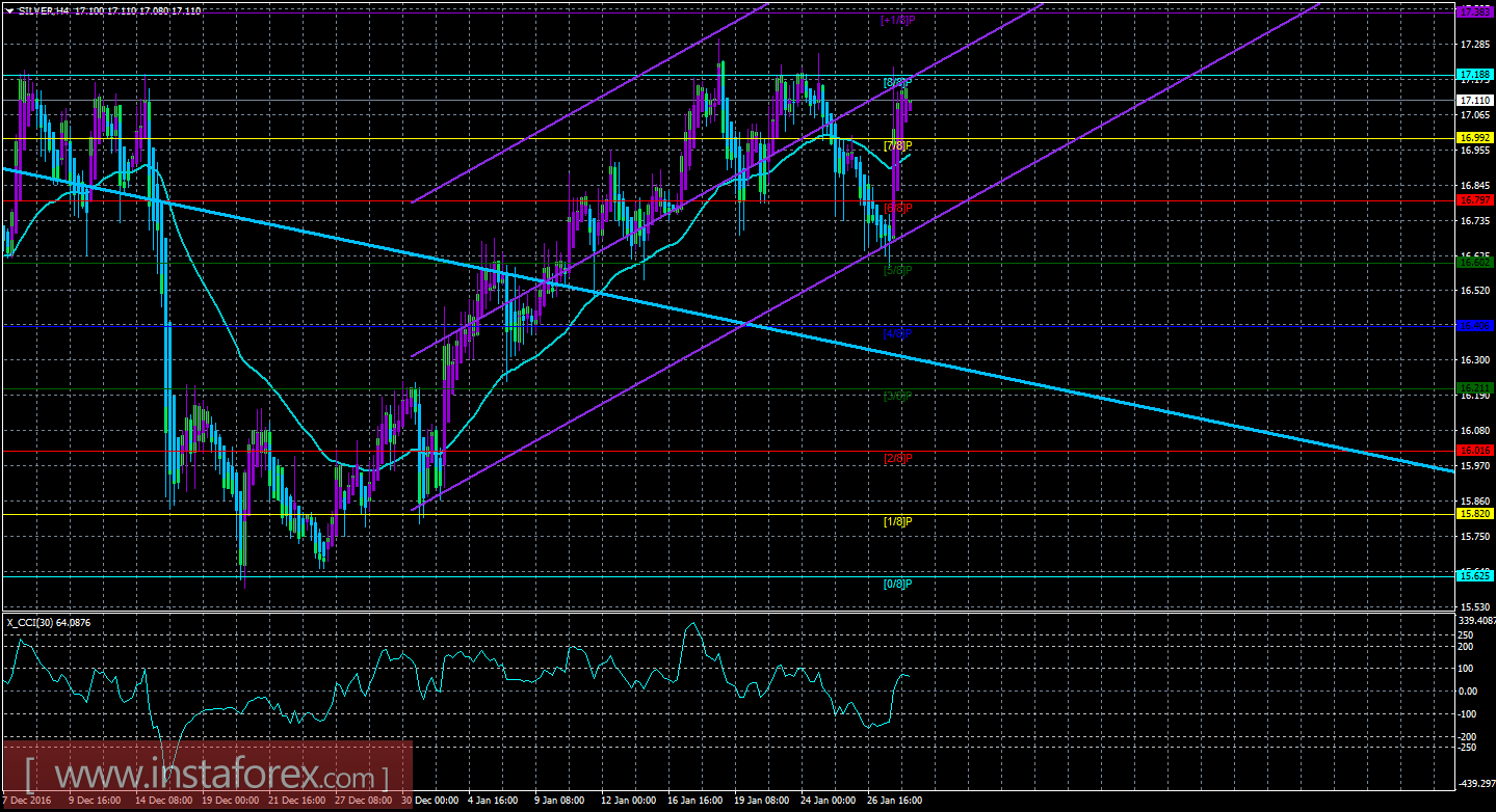 Техническая картина инструмента SILVER по системе «Каналы регрессии» за 30 января 2017 года