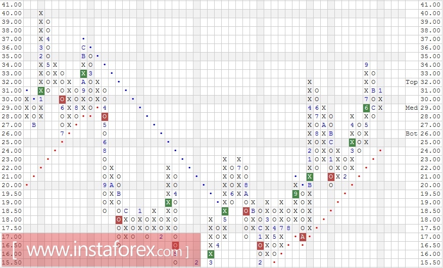 Первоначальной целью для покупателей выступает отметка 34, при подходе к которой рекомендуется закрыть 1/2 от общего объёма длинных позиций.