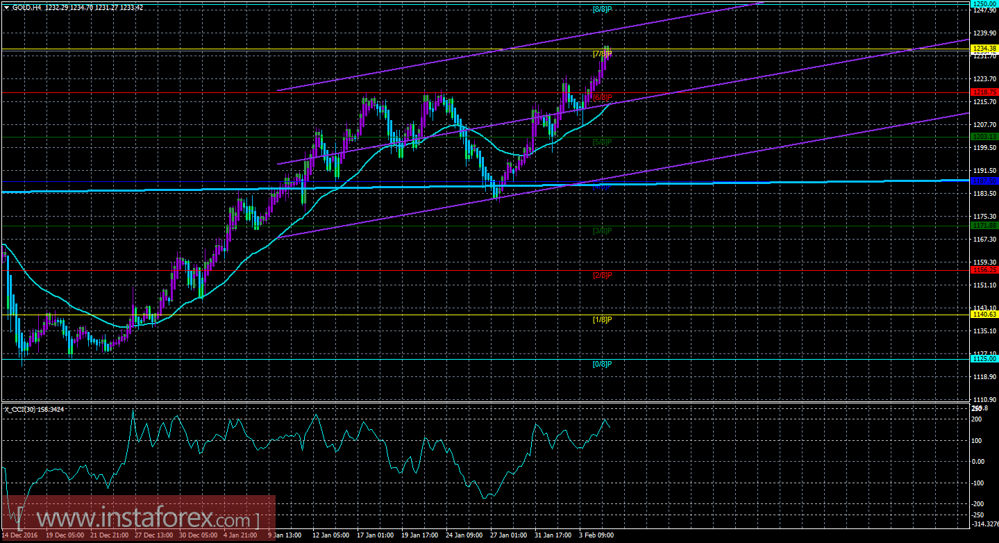 Техническая картина инструмента GOLD по системе «Каналы регрессии» за 7 февраля 2017 года