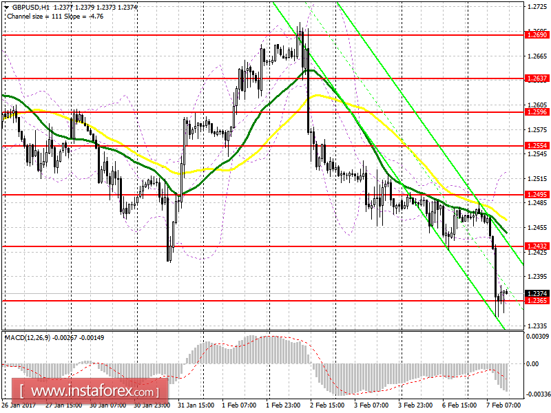Длинные позиции от уровня 1.2365, на который я обращал внимание еще сегодня утром, постепенно «сходят на нет». Видим, что достаточно быстрого отскока вверх не произошло, что указывает на наличие крупного продавца британского фунта. Покупки теперь рекомендую делать только на отскок, после снижения в диапазон новой поддержки 1.2282.