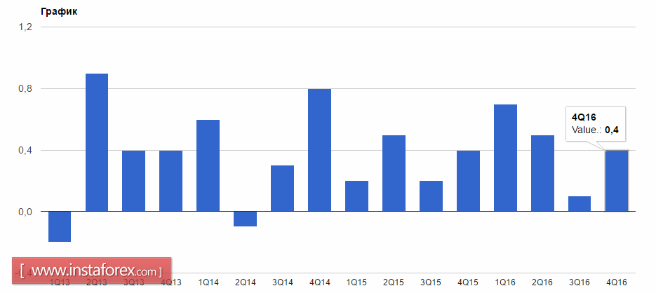 Что касается данных, то экономика Германии продолжает демонстрировать рост. Согласно отчету Федерального бюро статистики Destatis, ВВП Германии в 4-м квартале 2016 года вырос на 0,4% по сравнению с предыдущим кварталом. В годовом исчислении рост составил 1,7%. Небольшой коррекции подверглась оценка за 3-й квартал, где рост составил 0,8% в годовом исчислении.