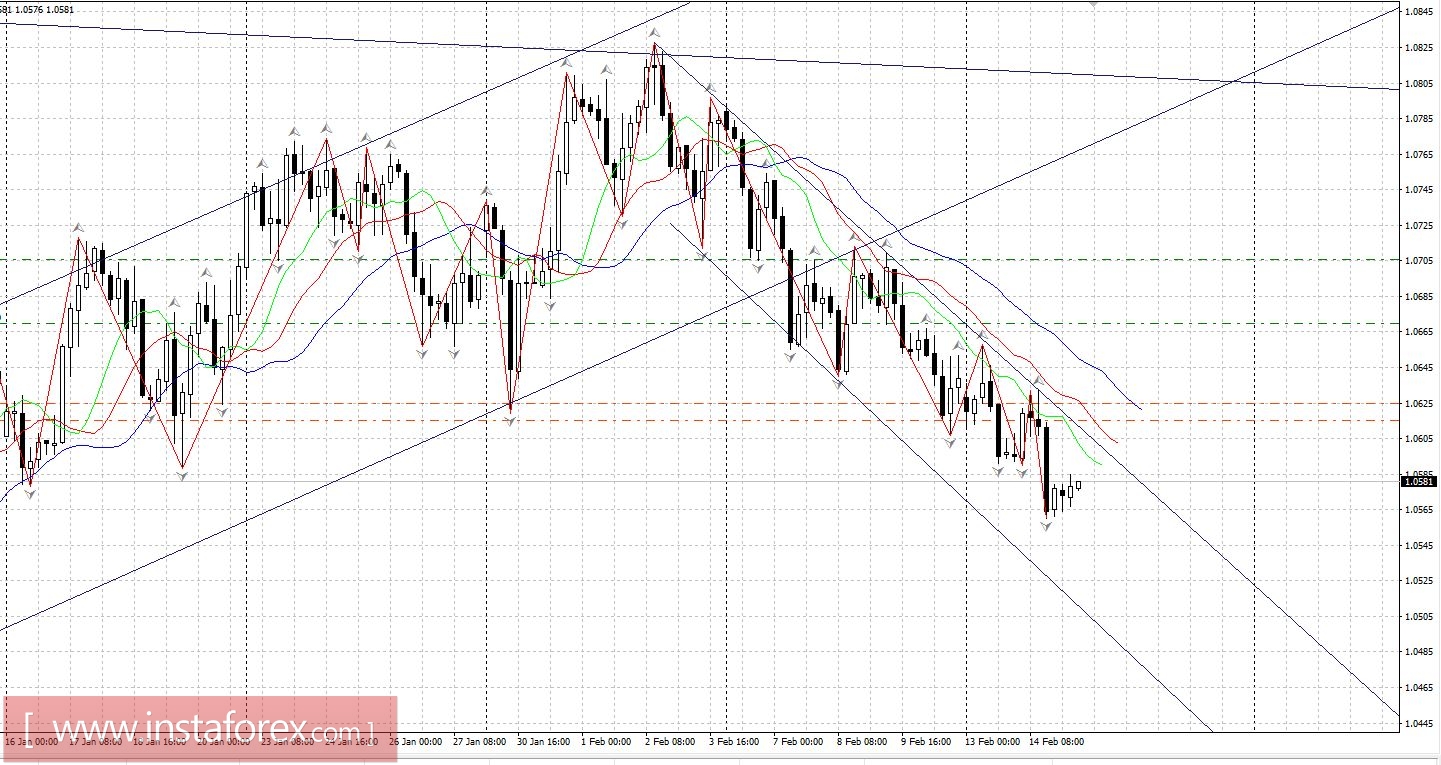 Снижение к доллару. Дневной диапазон 1.0600 - 1.0480.