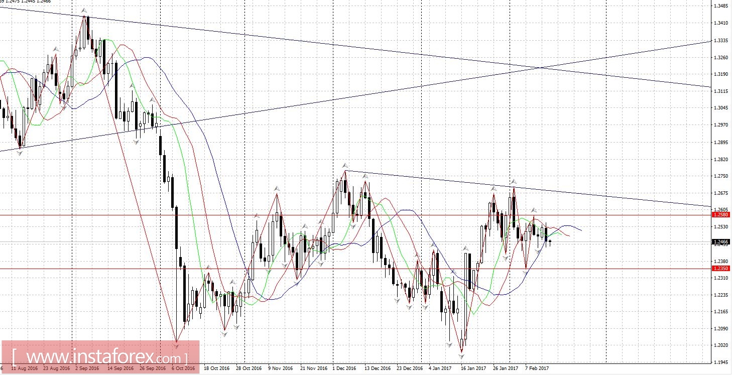 Снижение к доллару. Дневной диапазон 1.2500 - 1.2350.