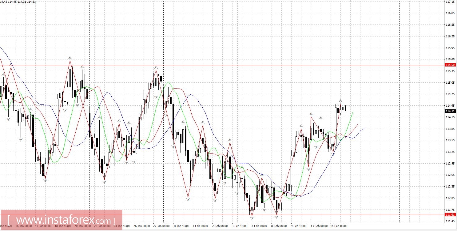 Рост доллара. Дневной диапазон: 114.0 - 115.0.