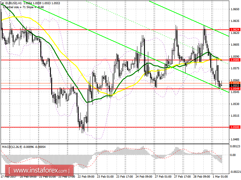 Покупки евро в настоящий момент носят весьма сдержанный характер. Открывать длинные позиции в паре лучше всего после неудачного пробоя уровня 1.0549 с возвратом на него. Первой целью по длинным позициям будет сопротивление 1.0585, от которого в рынок вновь попытаются зайти крупные продавцы. Основной целью на сегодня будет область 1.0624. На покупки евро, в случае падения ниже 1.0549, советую обратить внимание лишь после теста крупных областей поддержки 1.0500 и 1.0474.