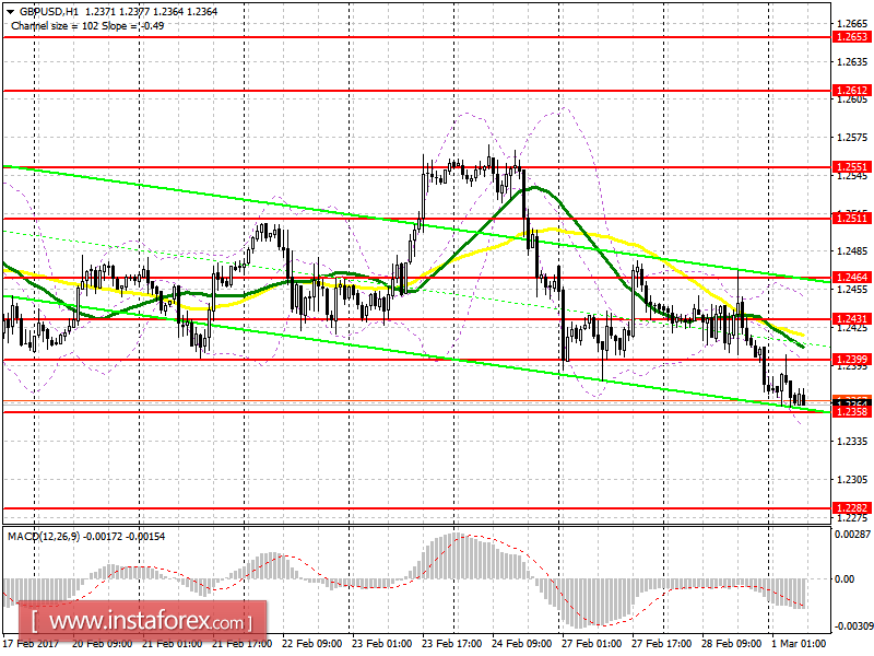 Продавцы фунта сосредоточат свое внимание на уровне 1.2358, пробой с закреплением под которым приведет к формированию крупной нисходящей тенденции в паре с целью 1.2282 и 1.2185. В случае роста фунта в первой половине дня, к коротким позициям советую обратиться только после теста 1.2399 либо сразу на отскок от крупного сопротивления 1.2431.
