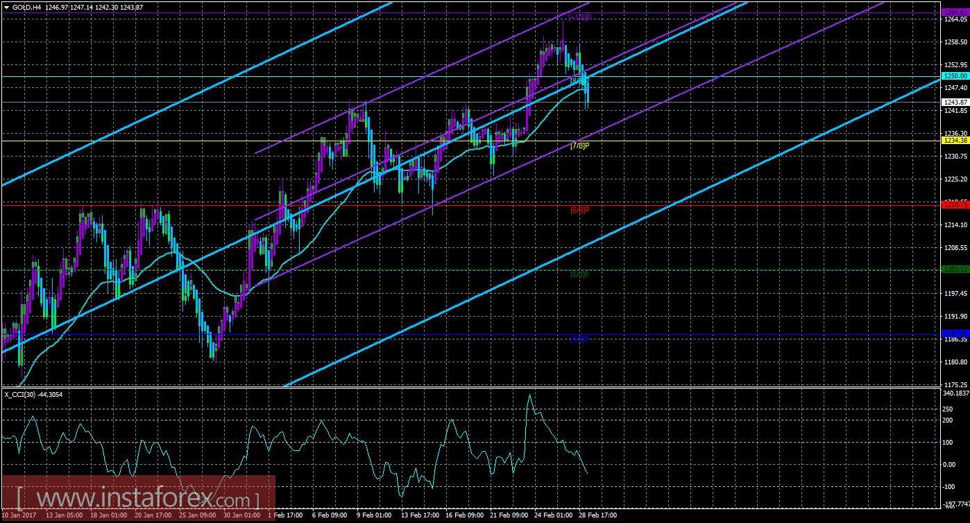 Техническая картина инструмента GOLD по системе «Каналы регрессии» за 1 марта 2017 года