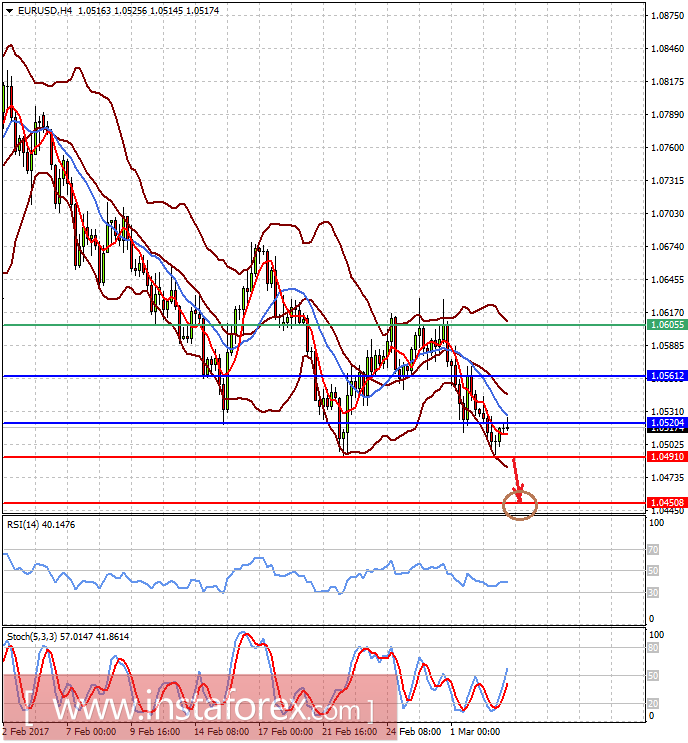 Пара EURUSD торгуется ниже уровня 1.0520 в ожидании выступления Дж. Йеллен. Если она тем или иным образом даст сигнал о том, что ставки могут быть повышены на мартовском заседании банка, пара возобновит снижение. Пробитие уровня 1.0490 приведет ее к падению 1.0450 с перспективным дальнейшим снижением.