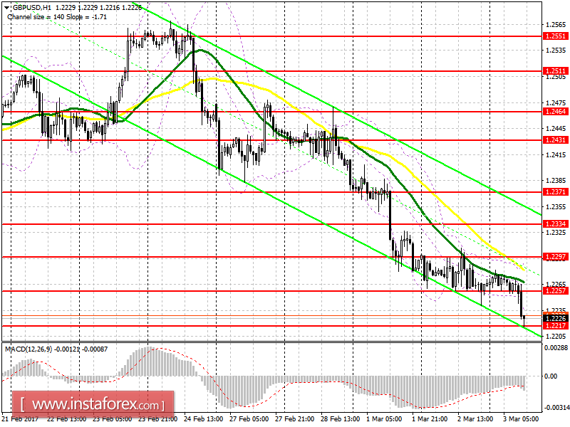 Данные по сфере услуг в Великобритании оказали давление на фунт, и первым уровнем поддержки выступила область 1.2217, на которую я советовал обратить внимание в своем утреннем обзоре. Пока покупатель удерживает этот уровень, пытаясь создать небольшой отскок фунта вверх. В случае повторного теста 1.2217 падение GBP/USD может продолжиться, поэтому открывать новые длинные позиции советую только в районе минимума 1.2159. Основной целью будет возврат к 1.2257.