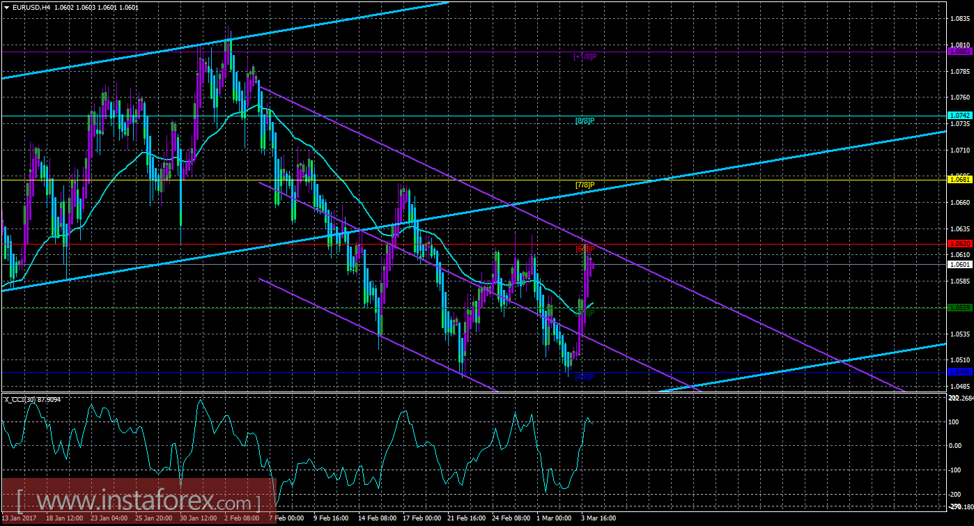 Техническая картина валютной пары EUR/USD по системе «Каналы регрессии» за 6 марта 2017 года