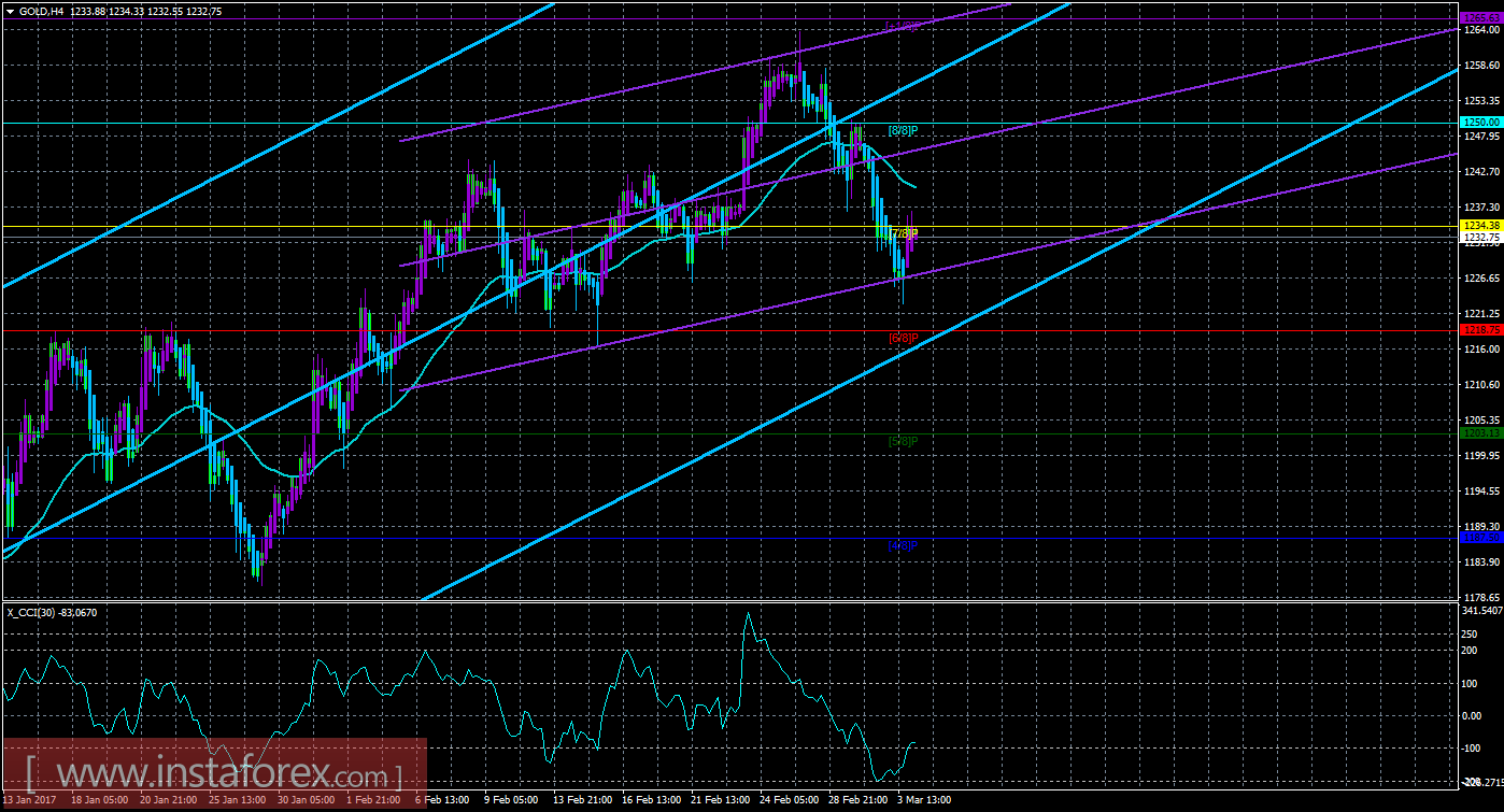 Техническая картина инструмента GOLD по системе «Каналы регрессии» за 6 марта 2017 года