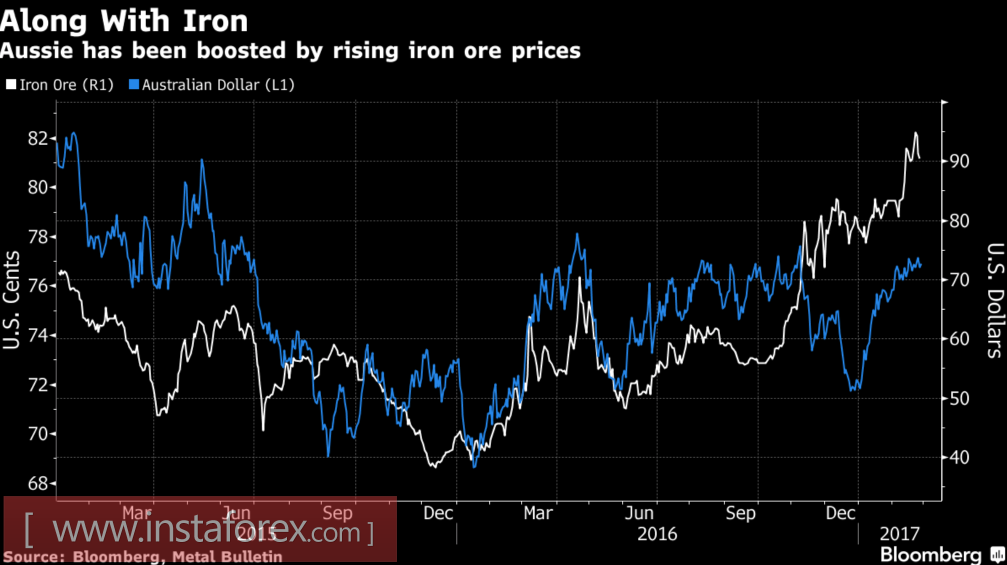 Согласно расчетам Bloomberg, стоимость AUD/USD с точки зрения регрессионного анализа завышена. Пара должна котироваться на уровне 0,73 с учетом динамики дифференциала процентных ставок RBA и ФРС, а также с точки зрения цен на железную руду, основной продукт экспорта Зеленого континента. В одном из своих последних выступлений глава Резервного банка Филип Лоу отметил, что нужно быть готовым к тому, что стоимость последней не будет долго находиться на уровне выше $90 за тонну. Именно ралли железной руды (+70% с конца июня) стало одним из ключевых драйверов укрепления «оззи».