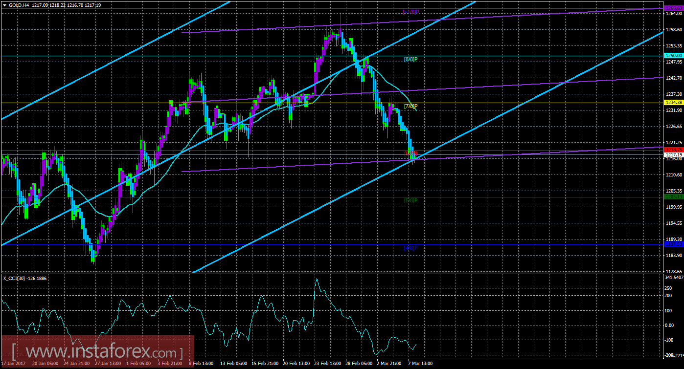 Техническая картина инструмента GOLD по системе «Каналы регрессии» за 8 марта 2017 года