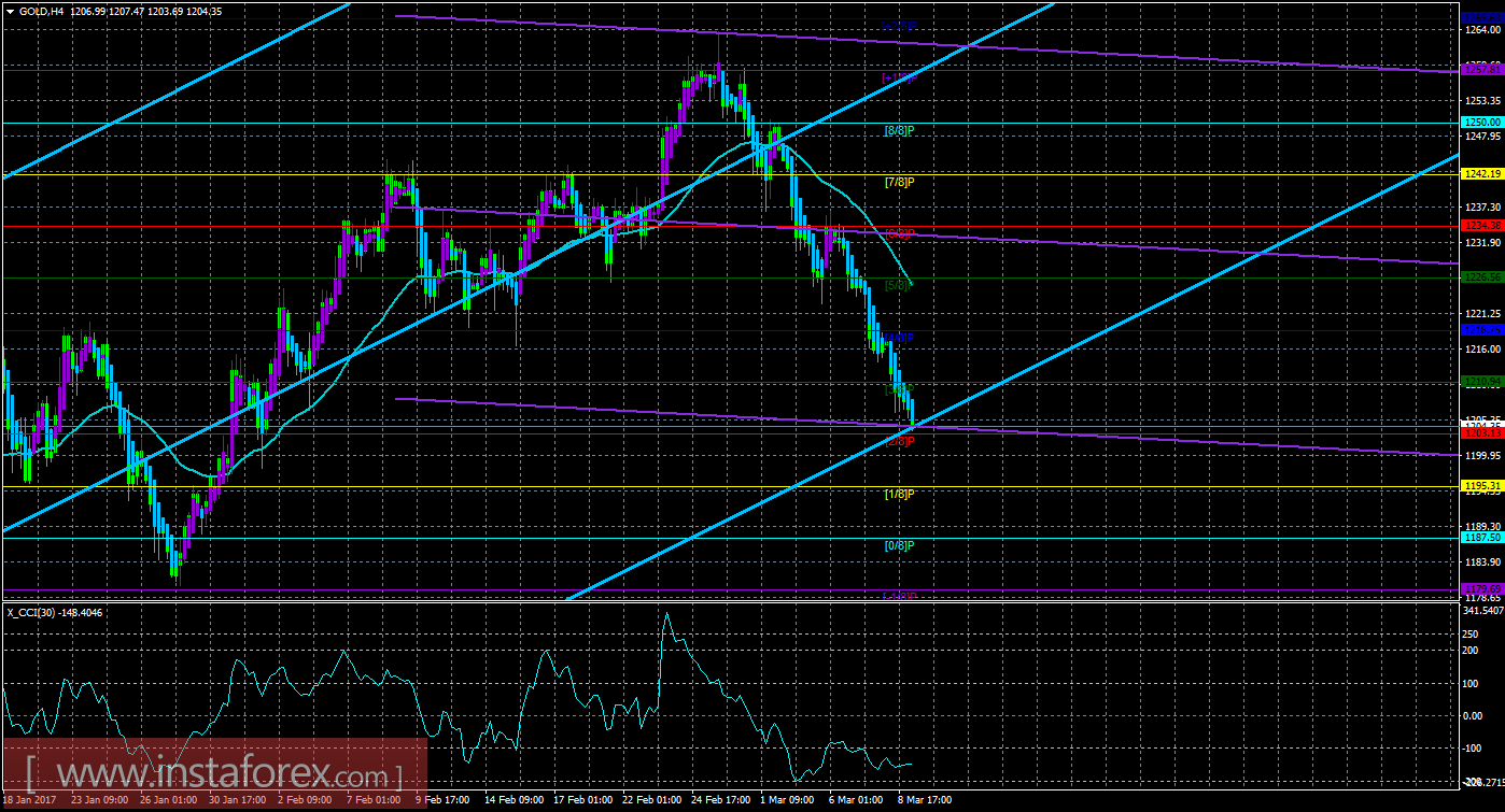 Техническая картина инструмента GOLD по системе «Каналы регрессии» за 9 марта 2017 года