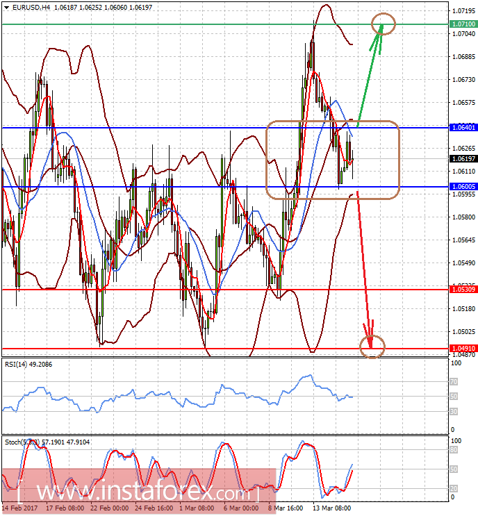 Пара EURUSD торгуется в диапазоне после выхода данных по потребительской инфляции в США. Позитивные для доллара итоги заседания ФРС по денежной политике приведут к падению пары, которая после прорыва уровня 1.0600 может продолжить снижение к 1.0530, а затем уже к 1.0495 и 1.0450.