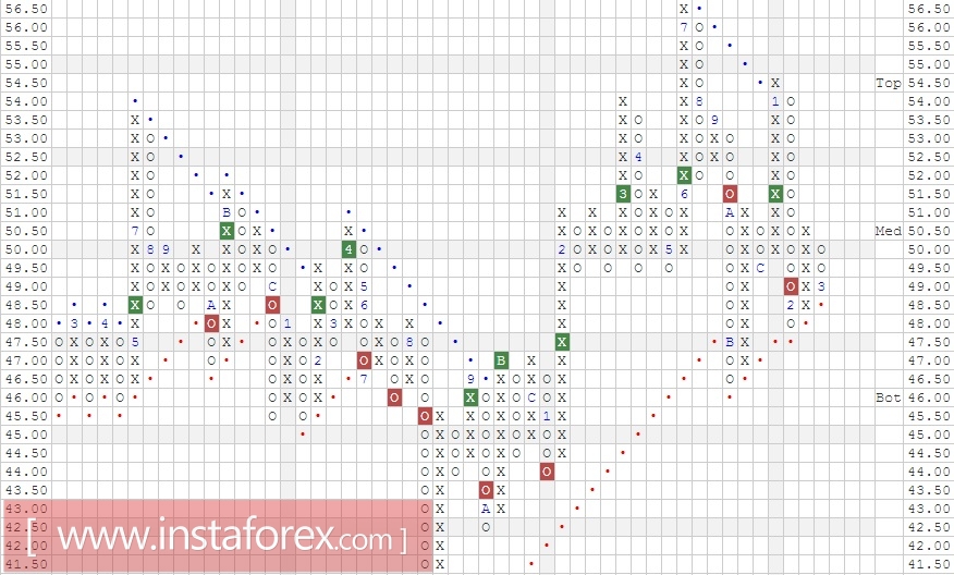 Первоначальной целью для покупателей выступит отметка 54, при подходе к которой рекомендуется закрыть 1/2 от общего объёма длинных позиций.