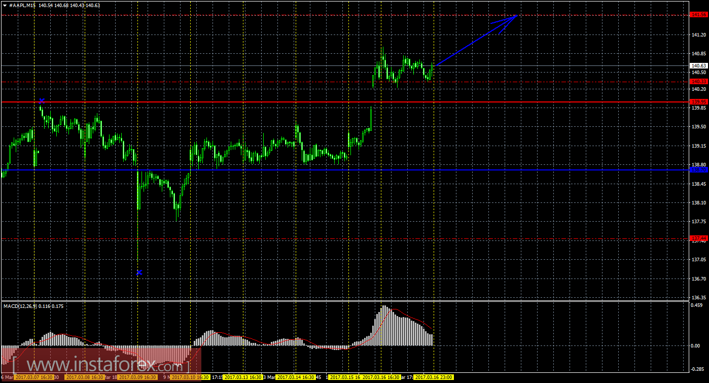 Технический и свечной анализ акций Apple на 17 марта 2017 года