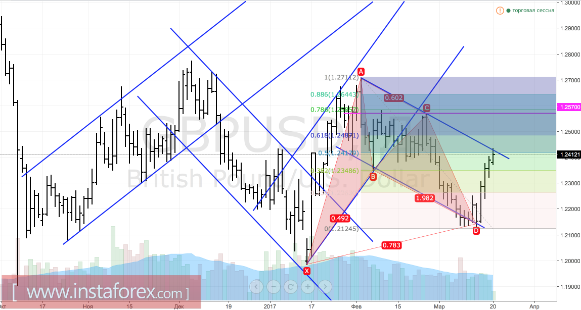 Технически пара GBP/USD подошла к верхней границе нисходящего торгового канала. Ее расположение соответствует уровню 50% от последней нисходящей волны. Прорыв выше усилит риски продолжения ралли в направлении 1,257. Напротив, отбой будет способствовать формированию диапазона консолидации 1,215-1,245.