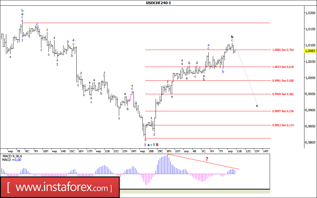 Волновой анализ валютной пары USD/CHF за 11 апреля 2017 года