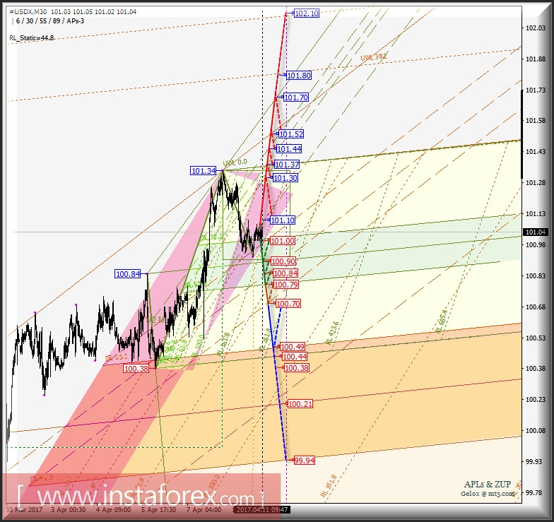 #USDX m30. Развитие движения в период 11_13 апреля 2017 г. Анализ APLs & ZUP