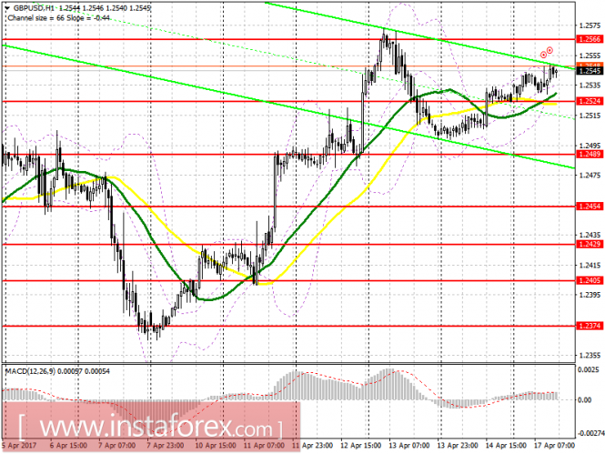 План для покупок по фунту соответствуют утреннему прогнозу. У покупателей фунта сегодня имеется реальная возможность продолжить восходящее движение, но при условии удержания уровня 1.2524, который теперь играет важную роль. Пробой с закреплением ниже 1.2524 приведет пару к 1.2489, где также будут наблюдаться небольшие предпосылки для роста фунта при тесте на отскоке. Основной целью на начало недели по GBP/USD остается область 1.2566, где будет предпринята попытка разворота рынка в обратную сторону.