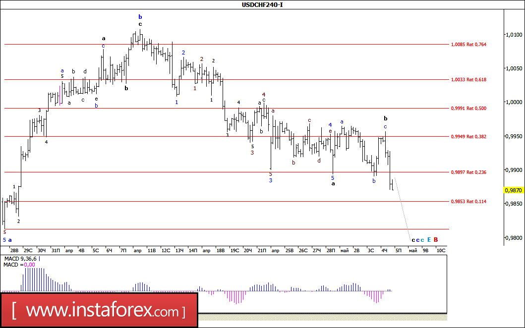 Волновой анализ валютной пары USD/CHF за 5 мая 2017 года