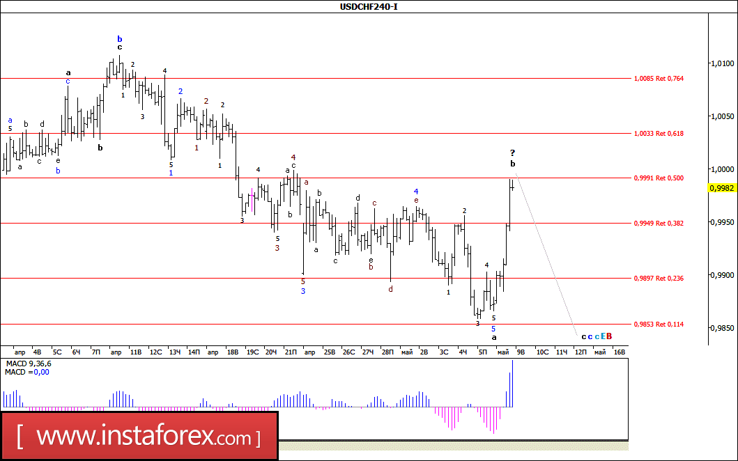 Волновой анализ валютной пары USD/CHF за 9 мая 2017 года