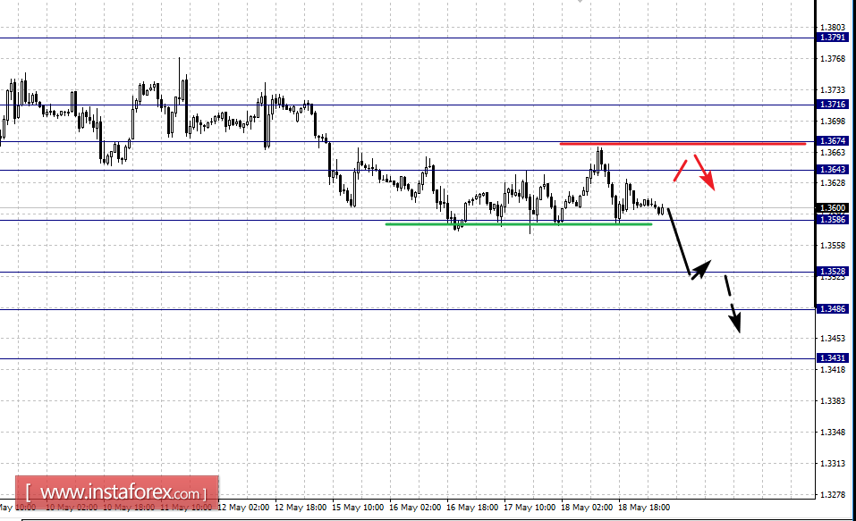 Краткосрочное восходящее движение возможно в коридоре 1.3643 – 1.3674, пробой последнего значения приведет к углубленной коррекции, здесь цель – 1.3716, этот уровень является ключевым сопротивлением для верха.