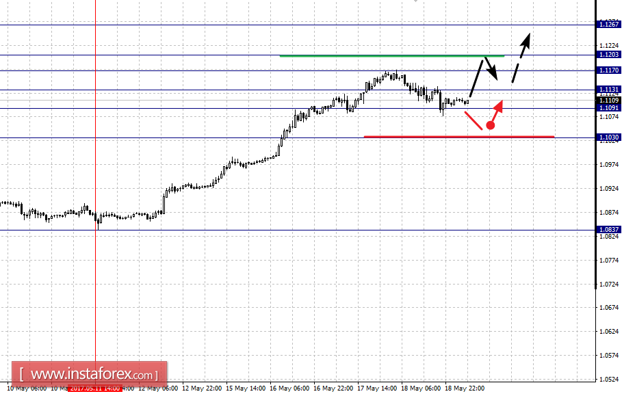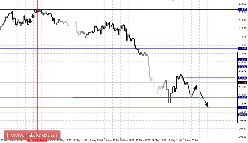 Уход в коррекцию возможен после пробоя 111.40, здесь цель – 111.86, краткосрочное восходящее движение ожидаем в диапазоне 111.86 – 112.17, который является ключевой поддержкой для нисходящей структуры от 10 мая.