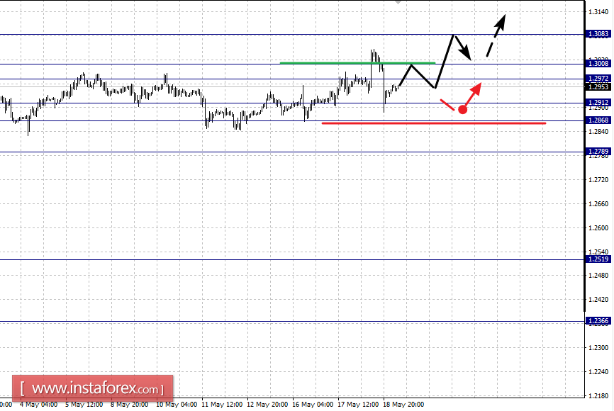 По паре Доллар/Франк ключевыми уровнями в масштабе Н1 являются: 0.9906, 0.9880, 0.9832, 0.9762, 0.9727 и 0.9683. Здесь мы следим за развитием нисходящей структуры от 11 мая. Краткосрочное нисходящее движение возможно в коридоре 0.9762 – 0.9727, пробой последнего значения приведет к движению до потенциальной цели – 0.9683, по достижении которой мы ожидаем откат кверху.