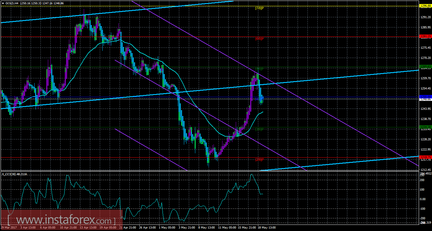 Техническая картина инструмента GOLD по системе «Каналы регрессии» за 19 мая 2017 года