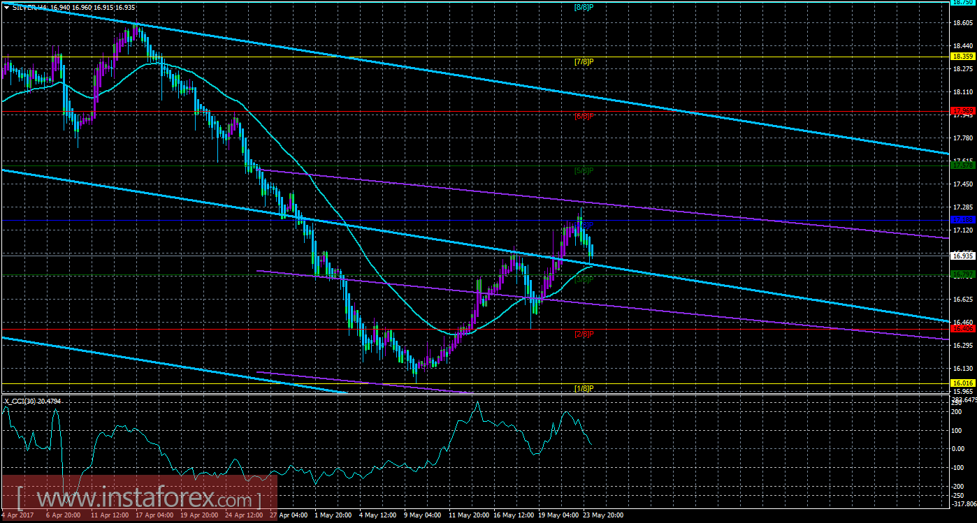 Техническая картина инструмента SILVER по системе «Каналы регрессии» за 24 мая 2017 года