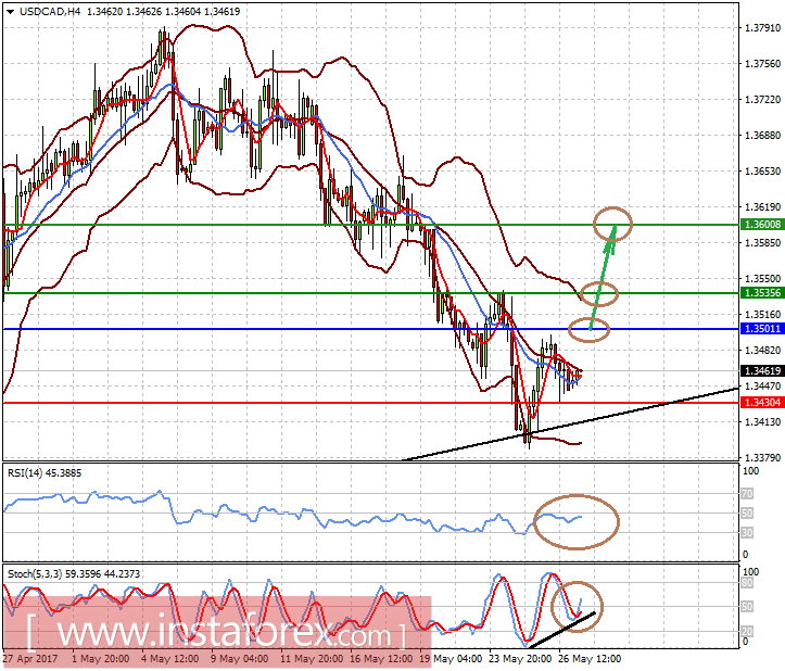 Пара USDCAD консолидируется на волне двух взаимоисключающих факторов. С одной стороны – это попытка котировок сырой нефти восстановиться, а с другой – ожидание повышения ставок ФРС США. Если цены на нефть не продолжат активно расти, можно будет ожидать повышение пары при пробитии уровня 1.3500 с целями 1.3535 и 1.3600.