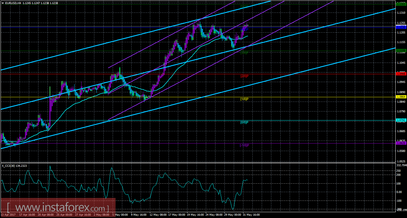 Техническая картина валютной пары EURUSD по системе «Каналы регрессии» за 1 июня мая 2017 года