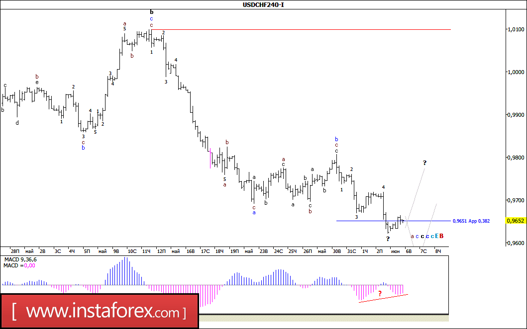 Волновой анализ валютной пары USD/CHF за 6 июня 2017 года