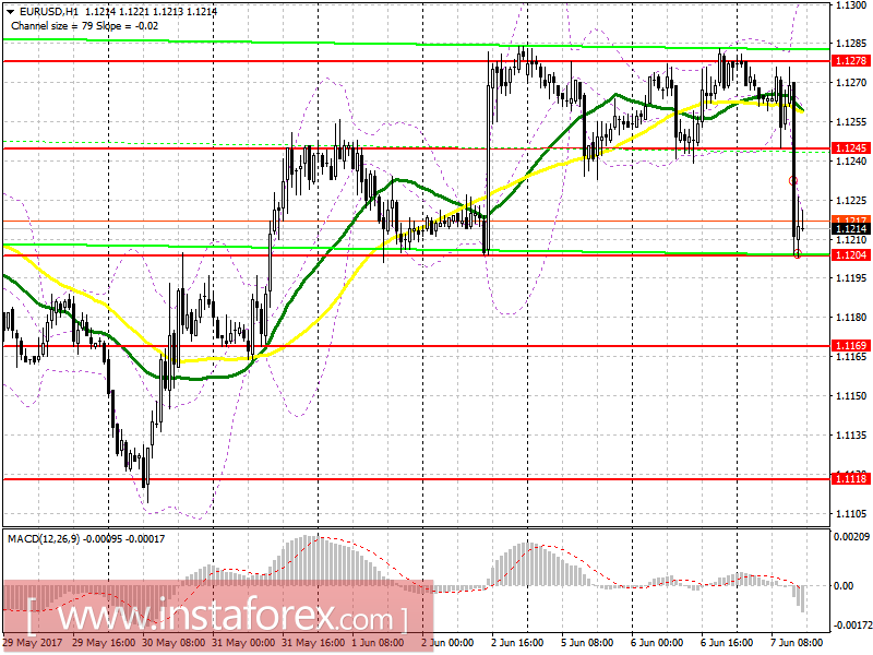 Повторная попытка роста выше уровня 1.1278 вылилась в очередную неудачу и распродажу евро, однако быки сумели с первого раза удержать уровень 1.1245. Со второй попытки эта область была пробита, что привело к обвалу EUR/USD в район поддержки 1.1204, на которую я советовал обратить внимание в своем утреннем обзоре. Отскок вверх от 1.1204 состоялся, и покупать вновь от этого уровня советую лишь при формировании ложного пробоя и возврата на него во второй половине дня с целью роста к 1.1245. Если давление на евро сохранится ниже 1.1204, покупать советую лишь сразу на отскок от 1.1169.