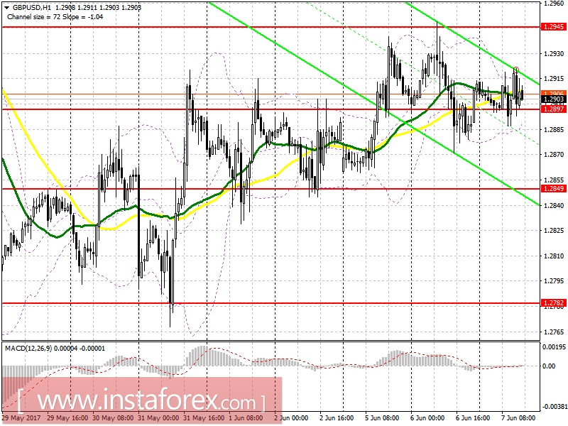 Продавать фунт советую только после повторного возврата под уровень 1.2897 с основной целью снижения к 1.2849. В случае роста пары во второй половине дня, продавать GBP/USD советую только поле формирования ложного пробоя на 1.2945, либо на отскок от 1.2989.