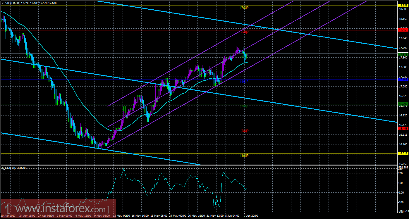 Техническая картина инструмента SILVER по системе «Каналы регрессии» за 8 июня 2017 года