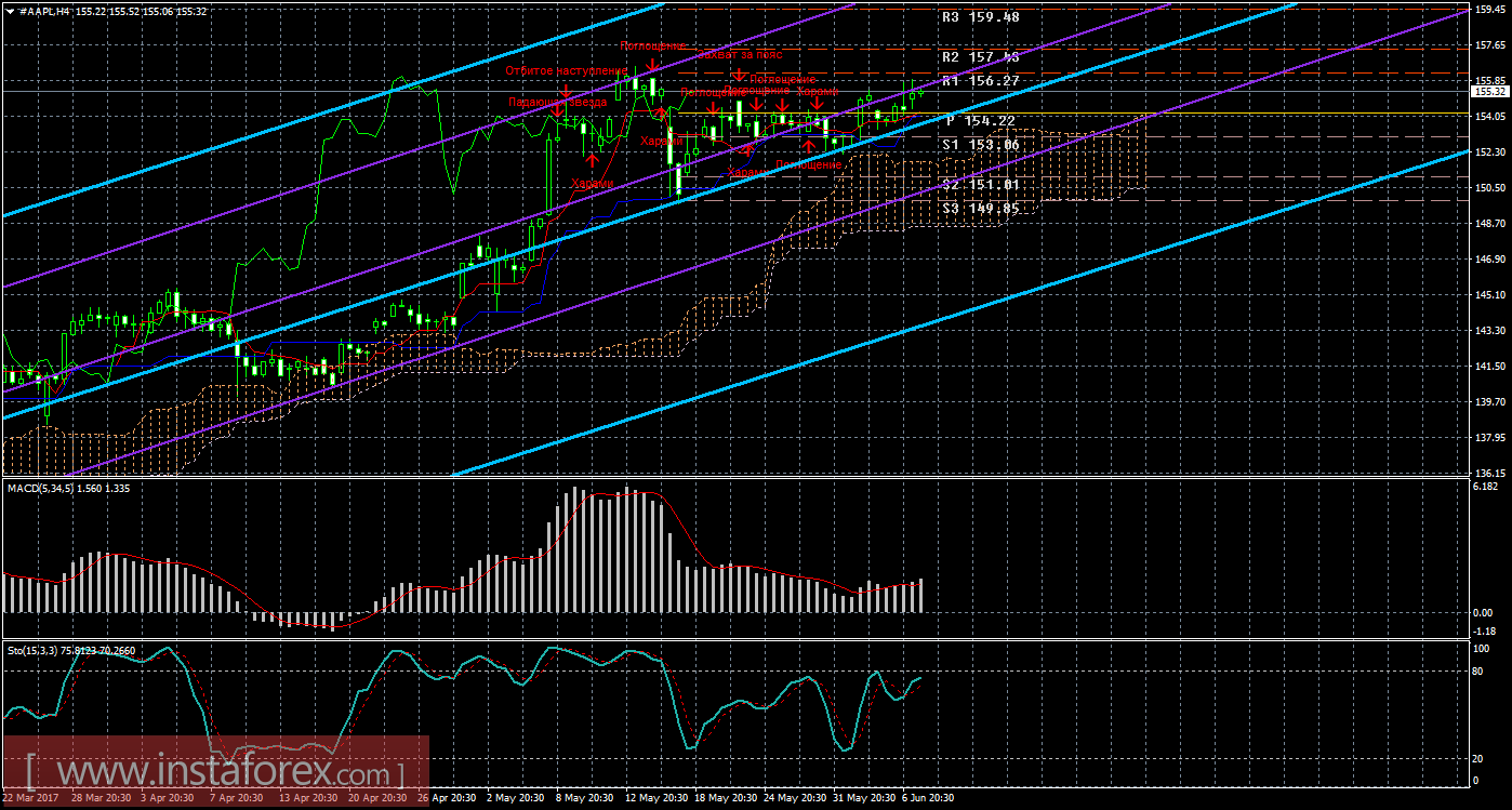 Технический и свечной анализ акций Apple на 8 июня 2017 года