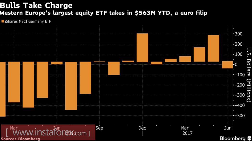 После того как Goldman Sachs заявил, что считает американские акции более перспективными, чем бумаги эмитентов Старого света из-за растущего евро, тенденция притока капитала в европейские ETF была нарушена. Не думаю, что укрепление EUR/USD будет идти также быстро, как в течение последнего месяца, так как инвесторы из Штатов при покупке EuroStoxx, DAX и других индексов будут хеджировать валютные риски продажей евро.