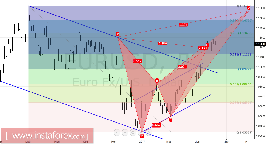 Технически таргет на 161,8% по паттерну «Краб» позволяет предположить, что евро может сходить к отметке $1,157, так что коррекцию имеет смысл использовать для покупок.