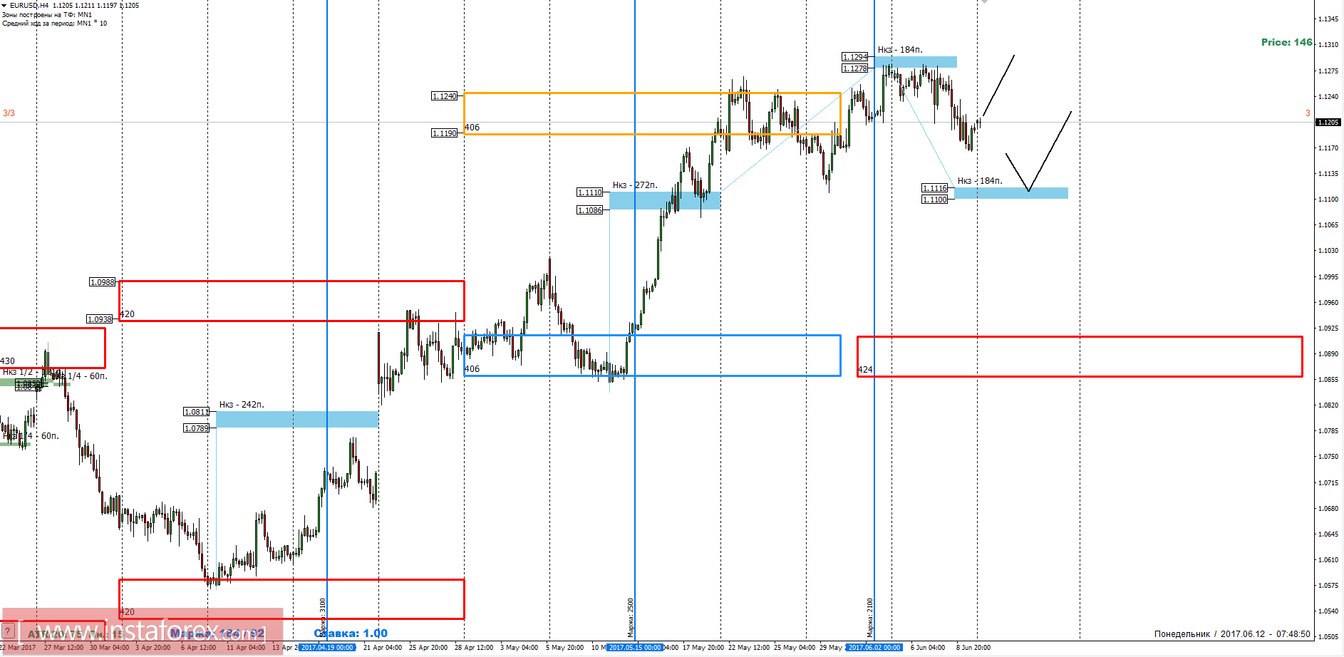 На прошлой неделе пара сформировала среднесрочную зону накопления. Целью снижения курса является недельная КЗ 1.1116-1.1100. Целью восходящего движения остается месячный максимум.