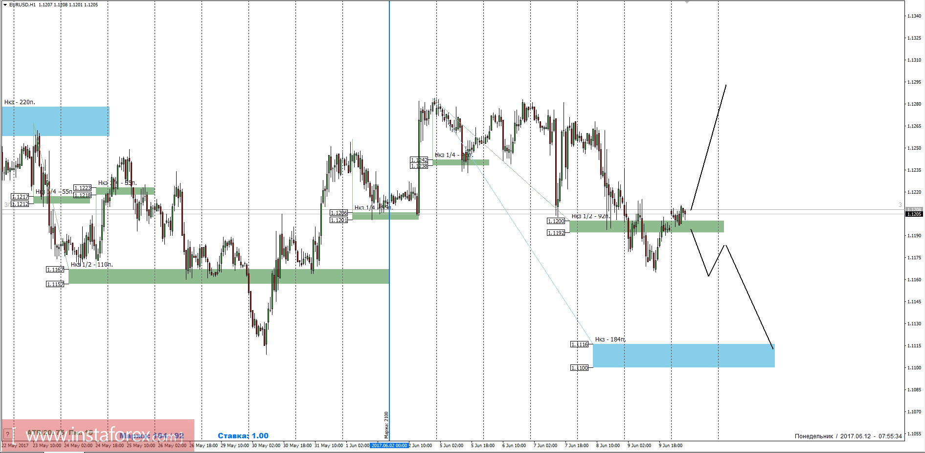 Закрытие торгов прошлой недели произошло в пределах НКЗ 1/2 1.1200-1.1192, что говорит о сохранении восходящего приоритета. Вероятность обновления максимума прошлой недели составляет 70%. Для нарушения восходящей структуры потребуется закрепление пары ниже уровня 1.1192 на одной из американских сессий. Если это произойдет, то целью падения станет недельная КЗ 1.1116-1.1100. Для тех, кто имеет открытые длинные позиции, наиболее выгодным является их удержание с целью обновления месячного максимума.