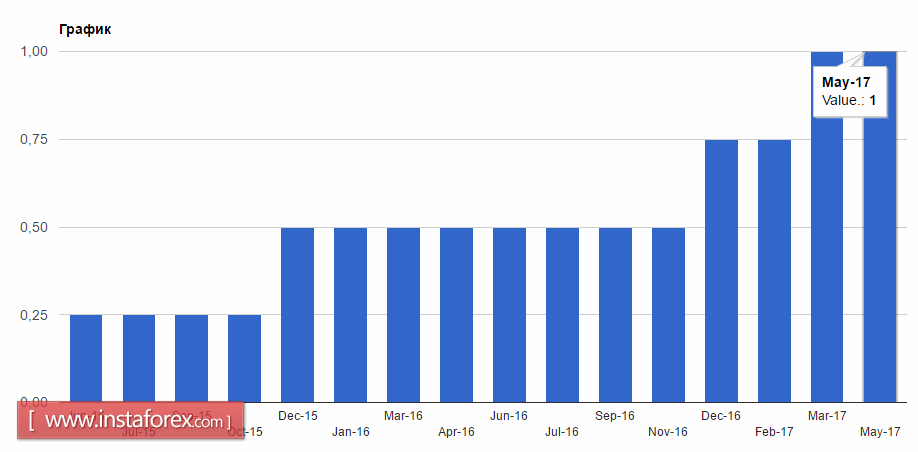 Сегодня в первой половине дня был опубликован прогноз по экономическому росту Франции. Как ожидают в Банке Франции, рост ВВП во 2-м квартале текущего года ускорится, а настроения в деловых кругах улучшатся. Согласно данным, ВВП Франции во 2-м квартале увеличится на 0,5% по сравнению с предыдущим кварталом после росте на 0,4% в 1-м квартале. Позитивный настрой регулятора также окажет поддержку евро в среднесрочной перспективе.